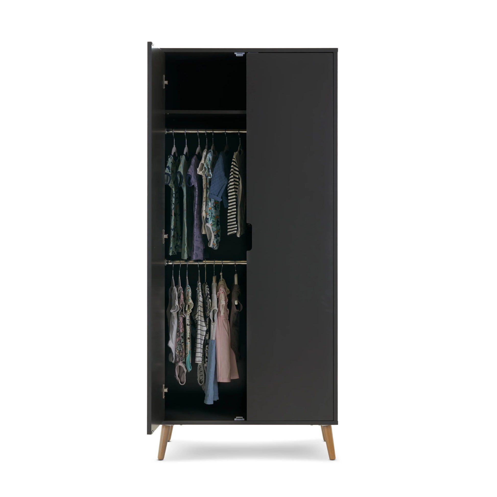 The Obaby Maya Double Wardrobe in Slate offers a perfect balance of style and practicality for modern family living. Its soft grey tones and natural wood accents create a calming Scandinavian inspired feel.