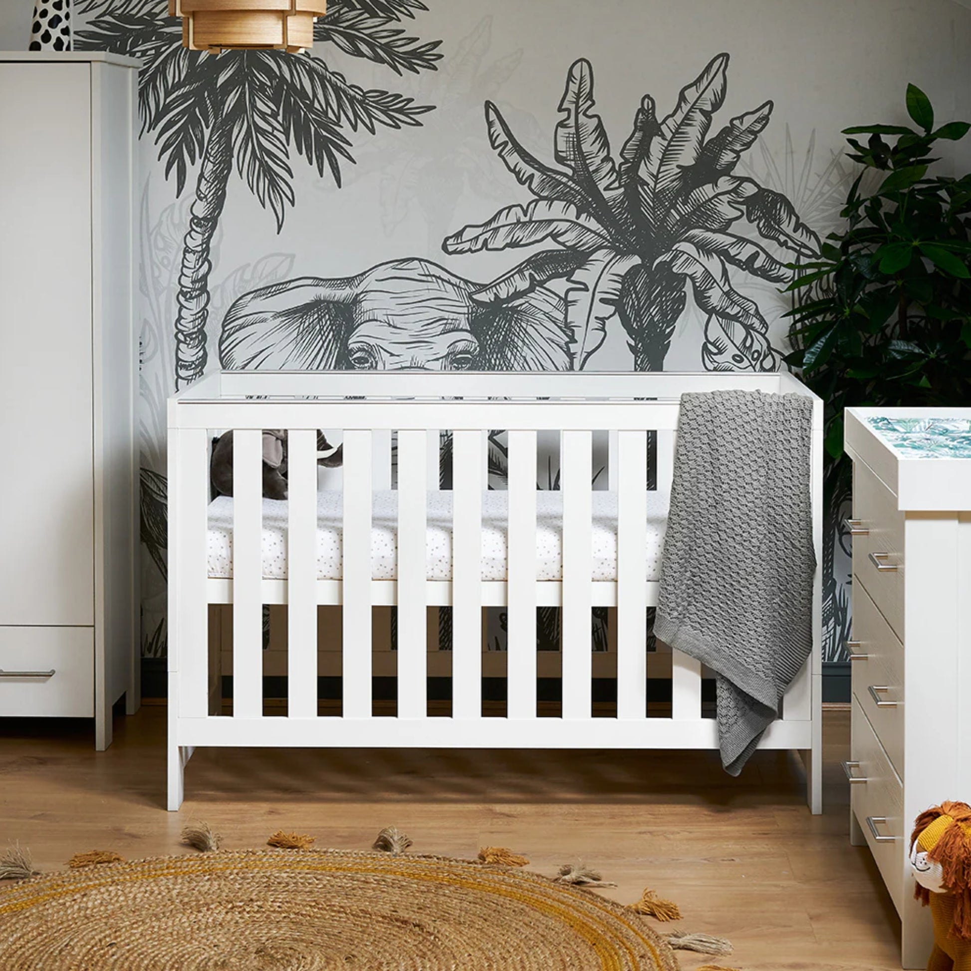 Designed to grow alongside your child, the Nika Cot Bed features an adjustable mattress base with three height positions — making it easy to lift your newborn in and out while ensuring added safety as they start to sit and stand. When your child is ready for more independence, the cot effortlessly converts into a toddler bed, offering familiarity and comfort during the transition. Durable materials, protective teething rails, and Obaby’s trusted craftsmanship make this cot bed a reliable and stylish choice for years to come.