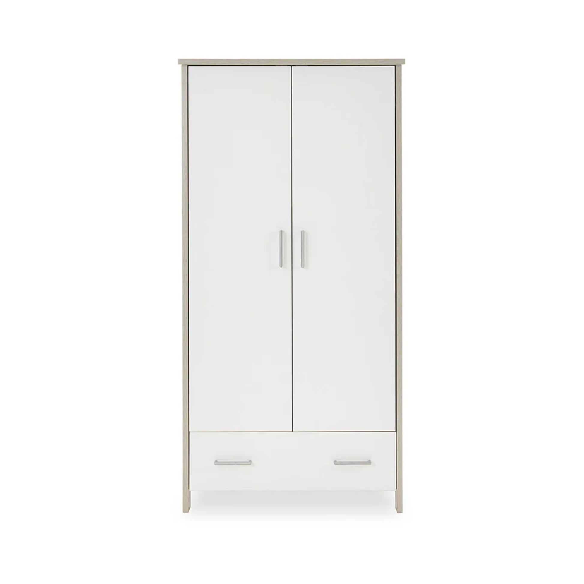 The Obaby Nika Double Wardrobe – Grey Wash & White combines smart storage functionality with modern design to deliver an elegant solution for your child’s room. Its grey-wash and white two-tone finish lends a subtle yet stylish aesthetic that complements contemporary nurseries, while the textured wood-effect detail adds depth and warmth. Designed to be part of the Obaby Nika furniture collection, it coordinates beautifully with other pieces to create a cohesive look.